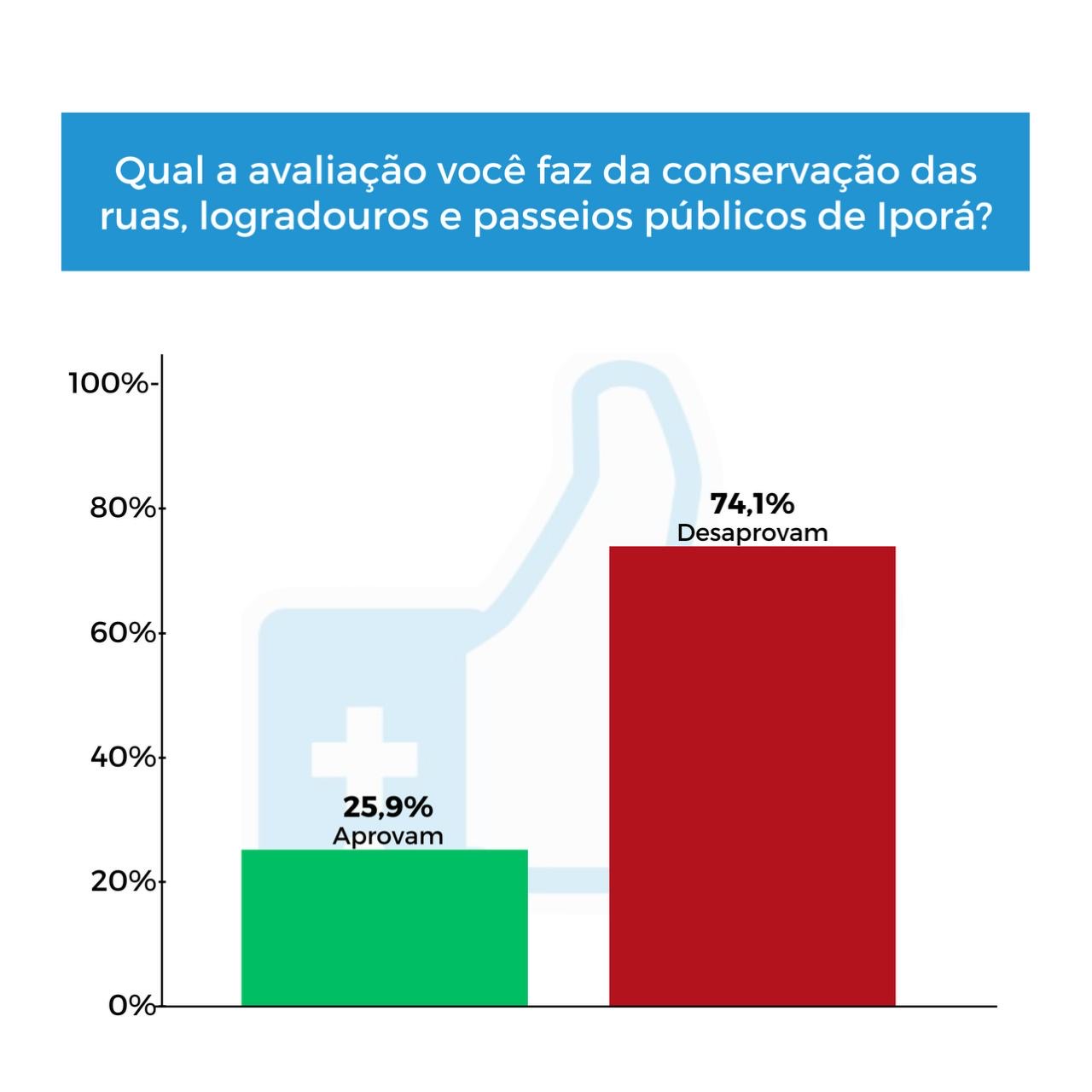 Pesquisa realizada pelo Instituto CAPP O+Positivo nos dias 8 e 9 de abril com 306 moradores de Iporá revela forte insatisfação com a conservação das ruas, logradouros e passeios públicos da cidade.
