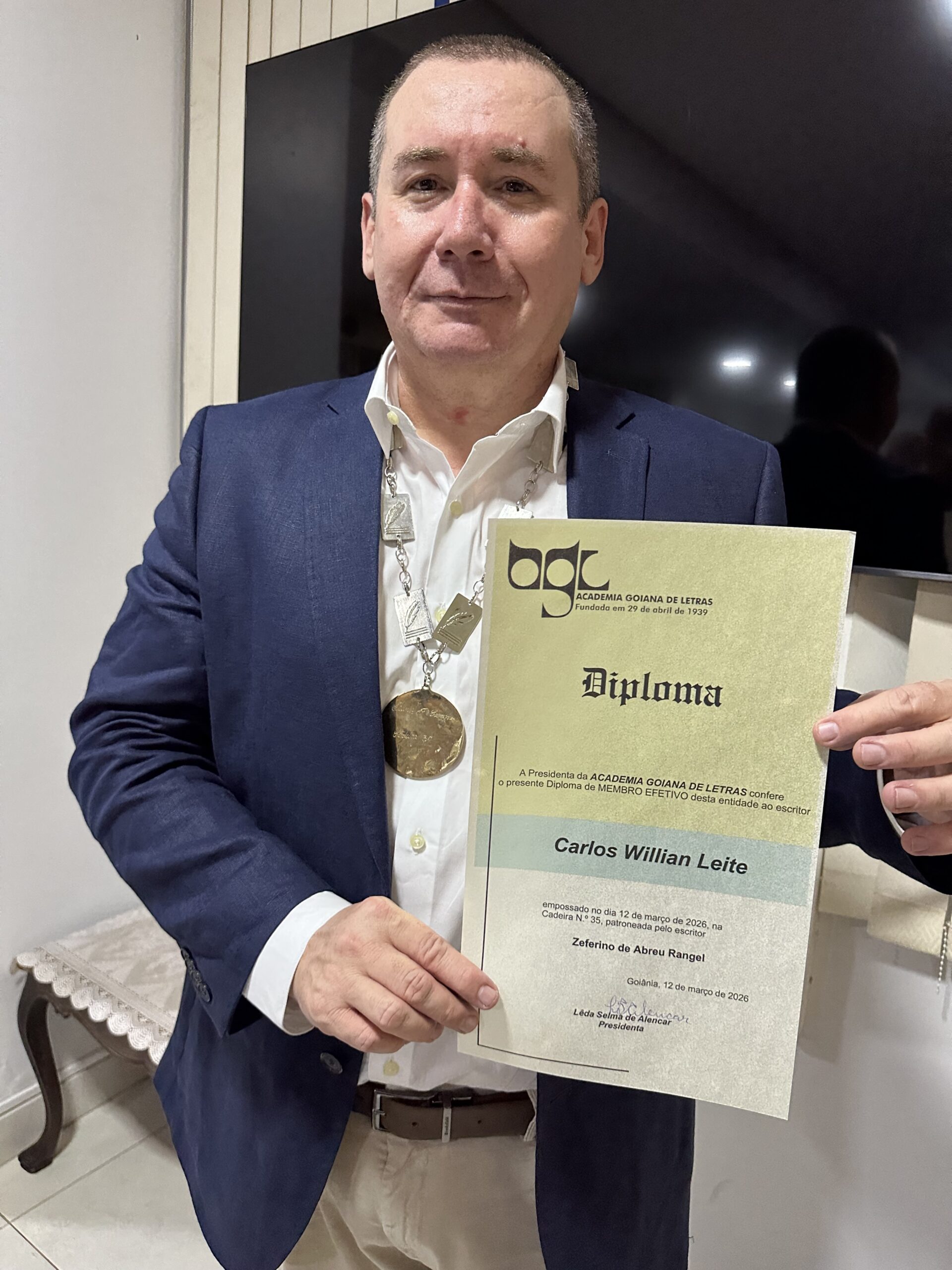 O poeta e jornalista iporaense Carlos Willian Leite tomou posse nesta quinta-feira, 12 de março, na cadeira de número 35 da Academia Goiana de Letras. A cerimônia foi realizada na sede da entidade, em Goiânia, e reuniu diversas personalidades do meio cultural goiano.
