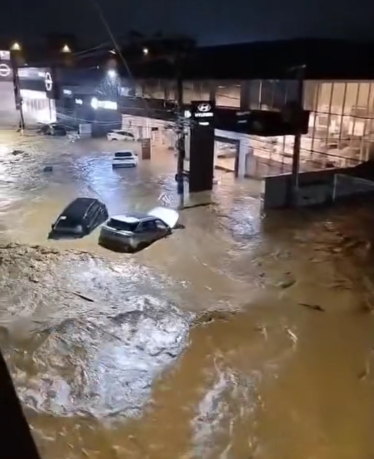 Em Ubá, a força da água foi suficiente para arrastar veículos após enchentes invadirem até mesmo uma concessionária da cidade. Diante do cenário crítico, a prefeitura decretou estado de calamidade pública por 180 dias.