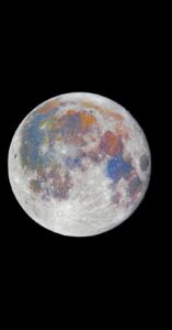 Na prática, a Lua não apresenta essas tonalidades vibrantes a olho nu. Sua coloração natural é acinzentada, podendo parecer amarelada ou alaranjada dependendo das condições da atmosfera terrestre.