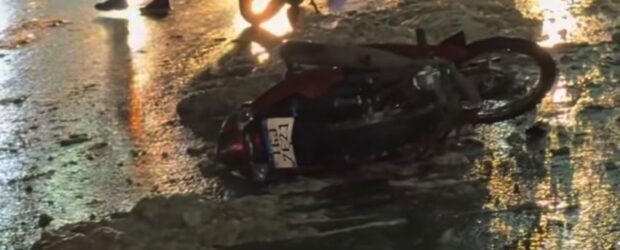 Líquido derramado na via teria causado a queda e mobilizou pessoas que passavam pelo local
