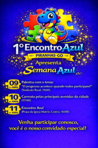 O município de Piranhas receberá, entre os dias 9 e 11 de abril, o 1º Encontro Azul, iniciativa voltada à conscientização sobre o Transtorno do Espectro Autista (TEA) e à promoção da inclusão.