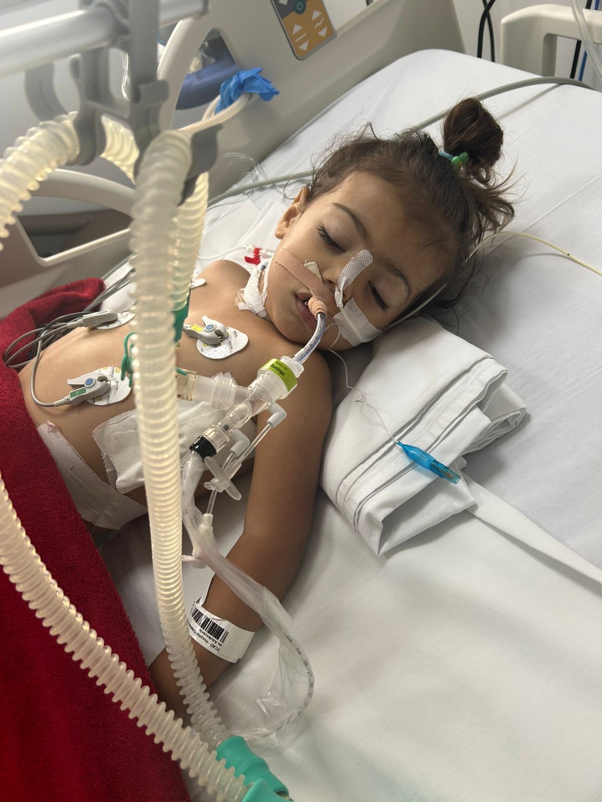 A pequena Heloísa, de 2 anos, foi diagnosticada com pneumotórax, condição que provoca o colapso parcial ou total do pulmão devido ao acúmulo de ar e líquido na cavidade torácica.